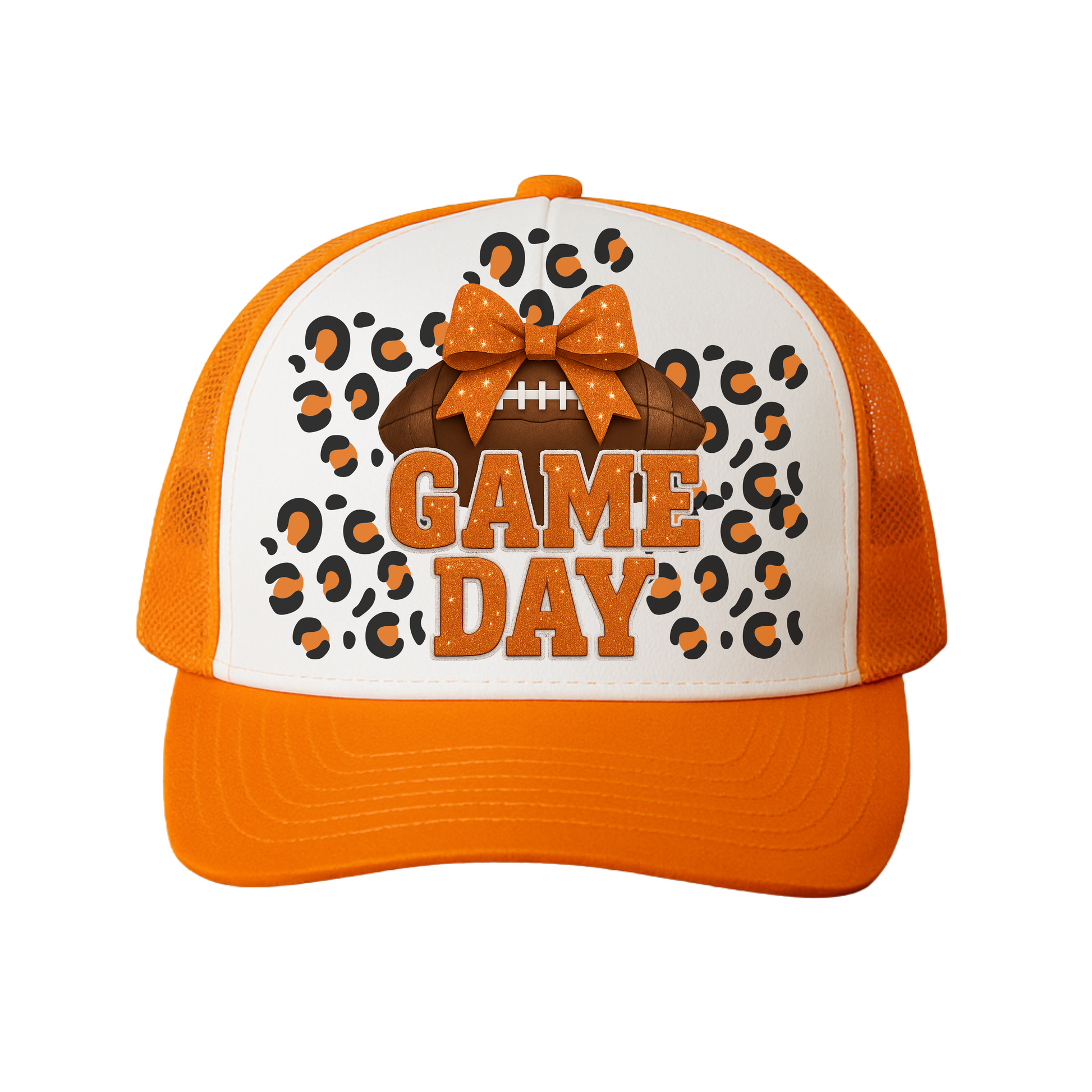 The Game Day Trucker Hat takes the stress out of repping your team while keeping your style on point. With its bold football design topped with a glitter bow, it’s the perfect blend of sporty and fun...whether you’re at the stadium, tailgating, or watching from home. This hat comes in 6 different colors. This hat gives you: